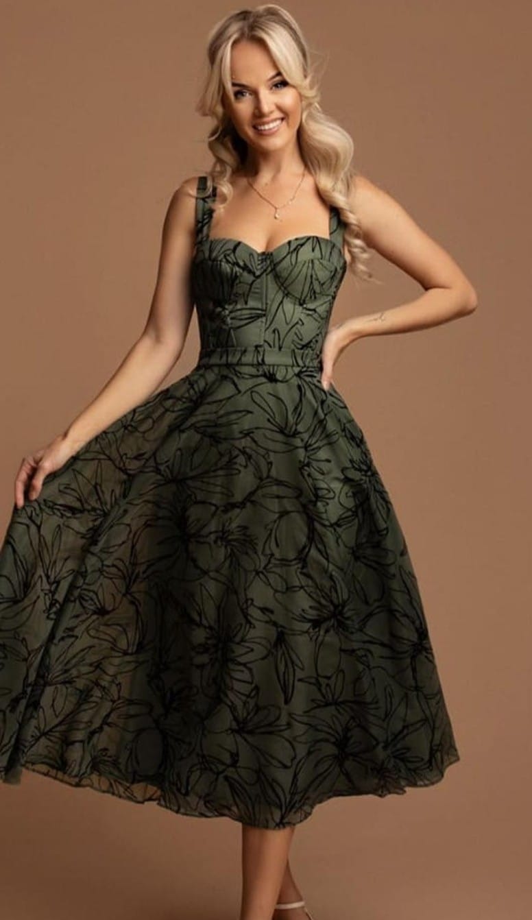 Vestido estilo corset con tirantes y escote corazón, falda en corte A hasta la rodilla y cremallera invisible